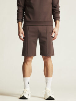 Detta stilrena plagg är gjort av ett premiumtyg med slät bomullsutsida och insida av mjuk polyester. Resultatet är svettisshorts med hög komfort som passar perfekt till avslappnade stunder i vardagen. Plagget har elastisk midjeresår med justerbar dragsko för optimal passform, veck på benen framtill och två sidfickor. En minimalistisk design gör att shortsen enkelt kan matchas med en mängd olika vardags- och träningsplagg. Broderad logo på vänster ben förstärker plaggets premiumkänsla.