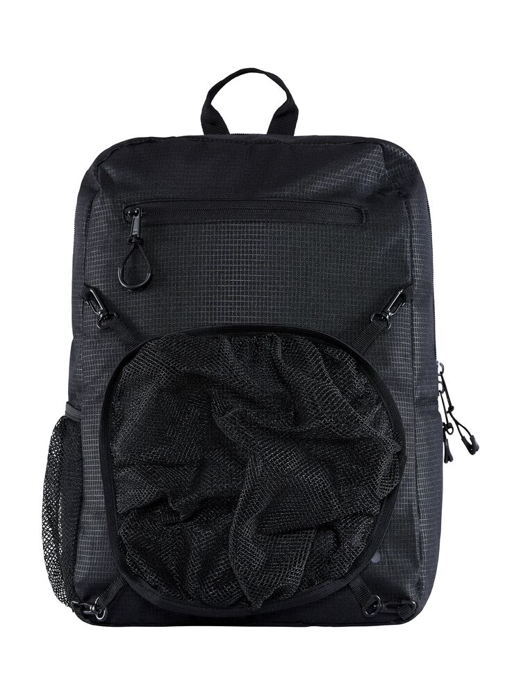 Praktisk ryggsäck med slitstark polyester på utsidan och förstärkt, PU-behandlad insida. 14L